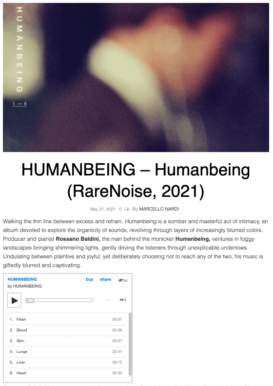 HumanBeing is the electronic persona/project of Italian composer and pianist Rossano Baldini.